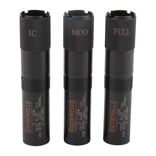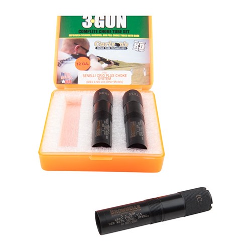 Brownells & Carlson’s 3-Gun Extended Choke Tubes are designed specifically for use in 3-Gun competitions. This 3-piece choke tube set allows the shooter to select the exact choke tube needed for any stage. Included choke tubes are Full, Improved Cylinder & Modified, ensuring you can quickly take out clay pigeons or knock down that long distance steel target. The three tubes are manufactured from 1704 stainless steel and designed to throw tighter and denser patterns than conventional choke tubes. Each choke tube is knurled on the end to allow for quick and easy removal. Constriction and size are laser marked on the end and body for easy reference. Slugs, sabots, and rifled slugs are not to be used in any choke constriction tighter than Improved Cylinder. Remember to pattern your shotgun choke tube with the specific shot shell load you are going to be using. Different brands of ammunition throw different patterns from the same choke tube. This choke is backed by Brownells & Carlson's lifetime warranty. Choke Tube Sets available for Benelli/Beretta 12 Gauge shotguns. Though not likely to be used at 3-Gun events, steel shot may be used through these choke tubes with exceptional results. Do not shoot steel shot larger than BB or any steel load faster than 1550 FPS through the Full or Extra Full Constrictions.
