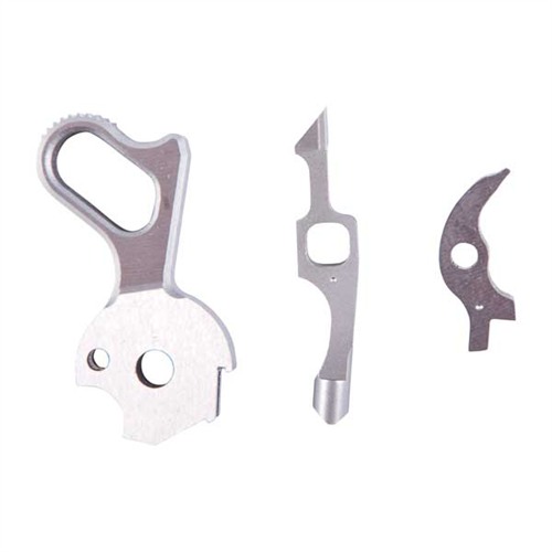 Todos los componentes son pulidos y tratados térmicamente a Rc 50-53 para garantizar una larga vida útil. El Tactical II Set presenta un martillo chamfered en blanco con ganchos de martillo de .018" de largo para un tirón de gatillo de calidad de competición. Disponible en acero de herramienta o en aleación de acero inoxidable de alta calidad.