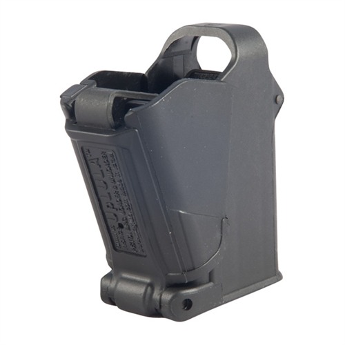 Magazine -Built to the very highest standards for the no-fail performance competitive and self-defense shooters demand. Feed lips are roll-formed and polished, not die cut, for added strength, and Chip’s proprietary follower design provides flawless feeding with semi-wadcutters and hollow points. Powerful spring of proprietary, heat-treated Rocket Wire further ensures reliable feeding, even when left fully loaded and seated in a pistol for extended periods. Removable plastic base pad with full, front-to-back engagement, is built to withstand continual use, and numbered witness holes on both sides of the body provide a fast, visible round count. Available in 8-round capacity with slightly extended base pad that adds about ¼" to magazine length. Magazine Loader - Hand-held loader fills pistol magazines quickly and easily, so you spend less range time loading mags and more of it shooting. Smooth, positive operation protects fingers and thumbs while you load hundreds of rounds painlessly—as fast as one round per second. Also lengthens magazine life by reducing wear and tear on feed lips. Hold the magazine upright with the bottom resting on a solid surface. Place the loader over the top of the mag, press down lightly while squeezing the lever to depress the follower, drop in a round, and work the lever quickly to push it into the mag. Repeat the process until the magazine is full. Constructed from tough, reinforced, black polymer. Locks closed when not in use, so it takes up minimal space in pocket or range bag. UpLula fits single- and double-stack 9mm, .357 SIG, .40 S&W, 10mm, and .45 ACP magazines, plus some .380 mags. Will not load Glock 6-round single-stack .45 caliber, Smith & Wesson 7-round single-stack 9mm, or magazines with less than 8mm between feed lips.