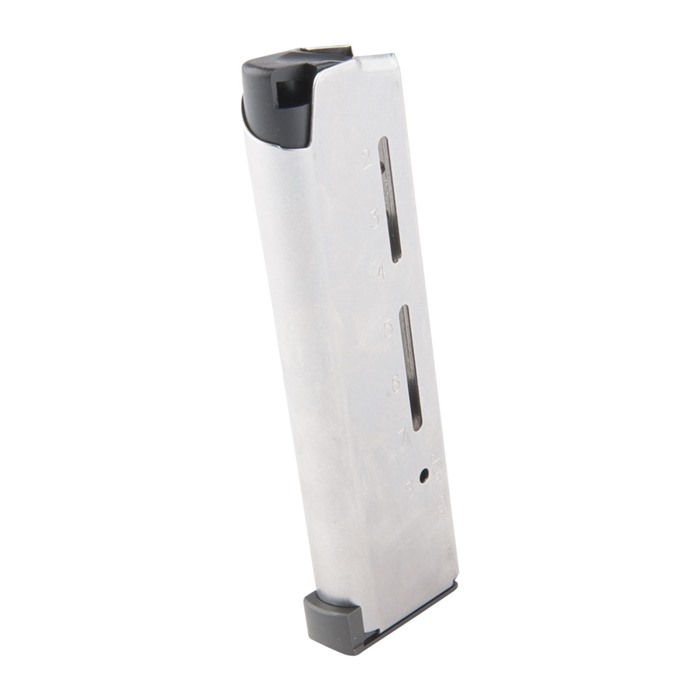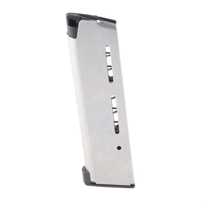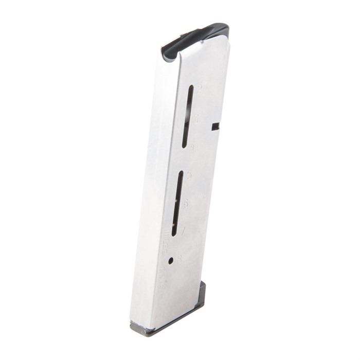 Este cargador es compatible con el modelo Gov’t y tiene una capacidad de 8 rondas. Disponible en acabado natural plateado o negro óxido, en unidades individuales o en prácticos paquetes de 3 que incluyen o no un pouch doble de Kydex® de Michael’s of Oregon.