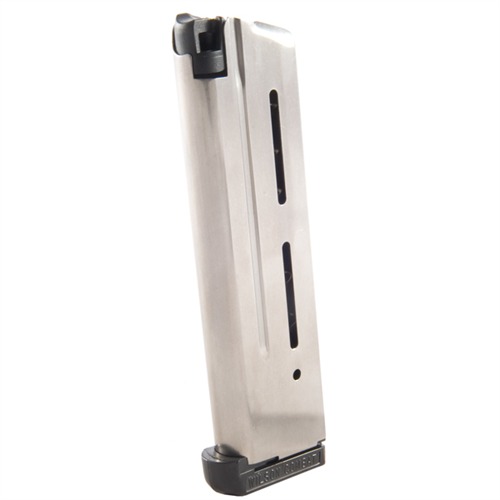 Made from heat-treated, 17-7, aircraft-grade stainless steel to stand up to the demands of competitive and defensive shooting. Precision-formed bodies are built to very close tolerances for excellent, universal fit. Exclusive, molded, self-lubricating follower ensures reliable feeding and slide stop operation. Extra-power Wolff spring resists “spring set”. Removable base, spring, and follower for fast, easy cleaning.