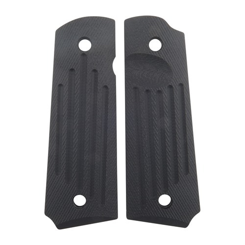 Los grips de G10 de fibra de vidrio mecanizados son casi impervious a solventes, humedad y expansión/contracción debido a extremos de temperatura. Con cinco profundas ranuras verticales en cada panel y un texturizado diagonal de líneas finas, estos grips te ayudan a mantener un agarre sólido en la pistola, pero no se engancharán como el checkering tradicional.