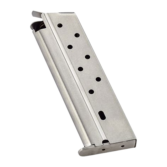 CMC Products Classic 10mm full size 1911 magazine is a traditional flush fit GI-style with all new materials and follower designed for durability and reliability. Laser welded stainless steel magazine tube with welded base plate, drilled for optional polymer base pad (Sold Separately). The Classic 10mm magazine includes witness holes to allow for a visual round count, and an extra power spring for long lasting tension and durability. 10mm Caliber Fits All Full-Size (Government Model) 1911 Handguns 9 Round Capacity Smooth finish for easy insertion and removal, and flush fit for minimal bulk and easy concealment.