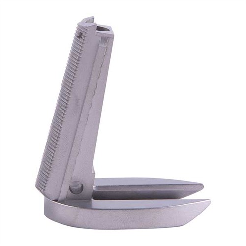 Está disponible en acero azul o acero inoxidable, con un grabado de 25 lpi que ayuda a mantener la pistola centrada en tu agarre. También puedes encontrarlo con los exclusivos diseños Chainlink y Chainlink II. Ambos patrones mecanizados ofrecen una superficie de agarre muy segura y antideslizante, sin la “agresividad” del grabado convencional que a veces puede irritar tu mano o engancharse en tu ropa al sacar la pistola para un porte oculto.