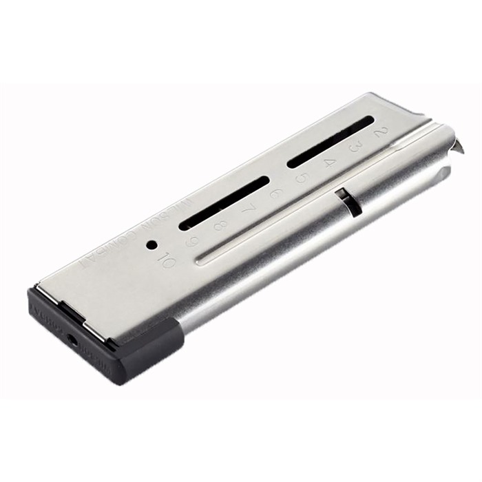 Introducing The Wilson Combat Next Generation ETM-9mm 1911 magazines-Now Completely Redesigned for Enhanced Reliability In the quest for flawless magazine function across a wide variety of custom and production handguns Bill Wilson has redesigned our Elite Tactical 9mm 1911 magazines to feed more smoothly, seat easier and lock back positively in a wider spectrum of guns than ever before. Our “Next Generation” ETM 9mm magazines have arrived and like other Wilson Combat Magazines will raise the bar for 1911 pistol reliability. After months of intensive research and testing by Bill Wilson in a myriad of custom and factory 9mm 1911’s we believe we have solved the issue of magazine reliability in a single stack 9mm 1911. These Next Gen ETM magazines have a redesigned tube with a small front ramp to prevent nose down feeding with short or hollow point rounds. A redesigned back spacer accommodates a wide variety of long-loaded ammunition and a stainless-steel follower and extra power spring ensure slide lockback even in guns with marginal or incorrectly fitted slide stops. These are the finest magazines made for the 9mm 1911 platform and have been rigorously tested by our cadre of professional shooters. Bill Wilson himself has logged over 10,000 rounds of various factory and reloaded 9mm ammunition to develop these magazines which are suitable for competition or tactical use. The Next Generation of 9mm 1911 reliability is available now. 9 or 10 round capacity with numbered tube Easy to load and seat with the slide in battery Available in Stainless Steel or Black finish Positive slide lock when empty .025" Tube Walls - Thickest In The Industry Superb feeding with a wide range of ammunition types Steel follower for flawless slide lock-even with marginal pistols The Stainless Steel ETM has the Strongest Magazine Tube Yet Developed, Virtually Eliminating Feed Lip Cracking, Tube Spread and Cracking and General Fatigue Proprietary Multi-Step Tumbling and Finishing Process Provides Smooth Follower Operation and Insertion into the Weapon Observation Slots Moved to the Rear of the Tube, Located Exactly Where They Need to be to Maintain the Structural Integrity Removable Base Pad for Easy Maintenance and Versatility with Different Base Pad Options No-Risk Service Policy - If the tube spreads or cracks from normal use, We Replace It! Note: Some Kimber® 1911 handguns have barrel feed ramps that are left undressed at the factory and will interfere with the ramped front of this magazine. The barrel can be easily modified by a gunsmith to provide the proper clearance required.