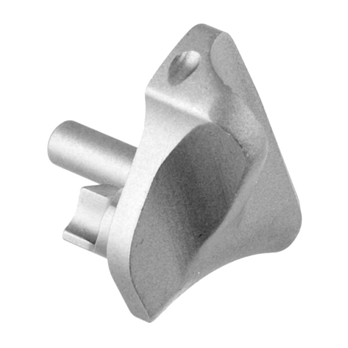 - Unión robusta: El eje de pivote se une a la placa con un generoso radio, crucial para prevenir la rotura por estrés de la unión placa/eje, algo común en otras marcas.