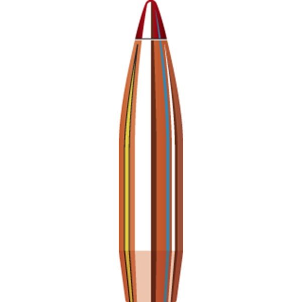 - Resistencia al calor: Para contrarrestar este efecto, Hornady identificó un polímero resistente al calor y desarrolló la punta Heat Shield, creando así el meplat perfecto con resultados excepcionalmente consistentes de bala a bala y de lote a lote.