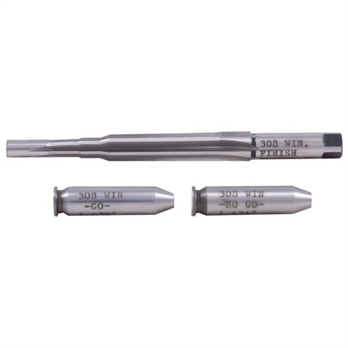 High-quality finish reamer and precision made headspace gauges make easy work when chambering a new barrel. Precision machined from high-quality steel for a lifetime of service when properly cared for. Finish reamers can be used in your lathe or hand-turned; perfect for fitting short chambered barrels. Includes headspace gauge to accurately measure chamber size and ensure a tight, safe chamber. Gauges are etched with Go or No-Go and caliber/gauge name for easy identification. Made to SAAMI specs.