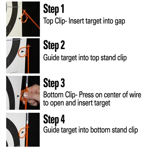 - Usa los dos clips de acero de resorte para asegurar los lados del objetivo de cartón al soporte.