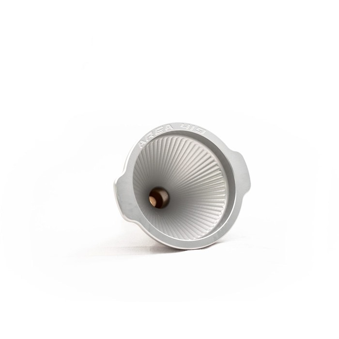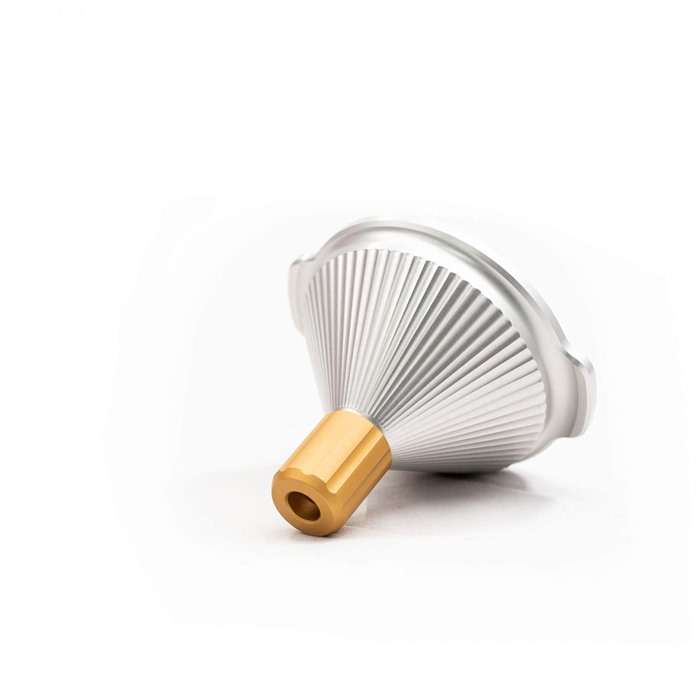 ¡HECHO EN EE.UU.! ¡De aluminio fabricado en EE.UU., en un molino HAAS hecho en EE.UU., con herramientas de corte fabricadas en EE.UU.! El diseño del embudo es tanto estético como orientado al rendimiento. Al ser mecanizado a partir de un billet sólido de aluminio 6061-T6, no genera carga estática que pueda adherir granos a las paredes del embudo. Esto también lo hace mucho más seguro para su uso con pólvora negra.