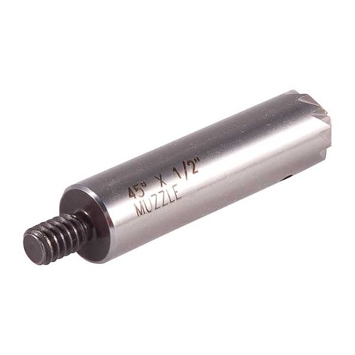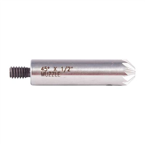 Used this with Brownells .45 BBL. Revolver Muzzle Brass Pilot (#080-944-450) to re-crown my S&W 625PC. The brass pilot measured .4405" diameter which was a good fit for my bore (.443") diameter. The Cutter's diameter (5/8") was a good match on the guns I used it on (S&W 625, 627, & 686). The last one I used it on left chatter marks/ripples. Not sure why as it cut the others smoothly. (Hope it's not getting dull already?) Purchase Brownells Facing & Chamfering Cutter Handle (#080-589-000) to use these together.
