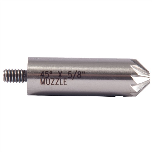 Used this with Brownells .45 BBL. Revolver Muzzle Brass Pilot (#080-944-450) to re-crown my S&W 625PC. The brass pilot measured .4405" diameter which was a good fit for my bore (.443") diameter. The Cutter's diameter (5/8") was a good match on the guns I used it on (S&W 625, 627, & 686). The last one I used it on left chatter marks/ripples. Not sure why as it cut the others smoothly. (Hope it's not getting dull already?) Purchase Brownells Facing & Chamfering Cutter Handle (#080-589-000) to use these together.