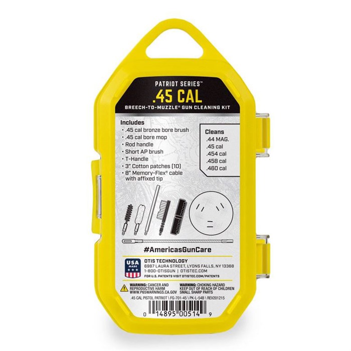 Gracias por elegir el Kit de Pistol PATRIOT de OTIS .45 Caliber. Este kit está diseñado para facilitar el mantenimiento y la limpieza de tus armas de fuego. Para garantizar un uso seguro y efectivo, es importante que sigas las instrucciones y pautas de seguridad que se presentan en esta guía.