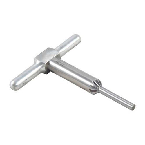 El cortador de chaflán de 45° es ideal para romper los bordes de las estrías en los cañones de tus rifles y pistolas, asegurando una salida limpia de la bala. Además, chafla las bocas de las cámaras del cilindro de los revólveres para recargas rápidas.