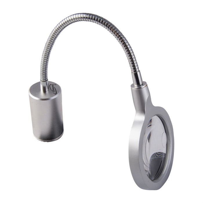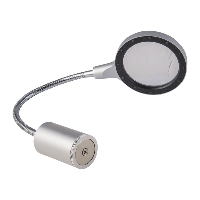 El magnificador está equipado con varias luces LED, que traen cualquier objeto a la vista clara. Todo el sistema óptico está conectado a un brazos flexible de 10 pulgadas de largo que está anclado a una base cargada con imanes de tierras raras. Esto te permite mantenerlo adjunto a cualquier superficie metálica con facilidad, permitiendo un uso sin manos.