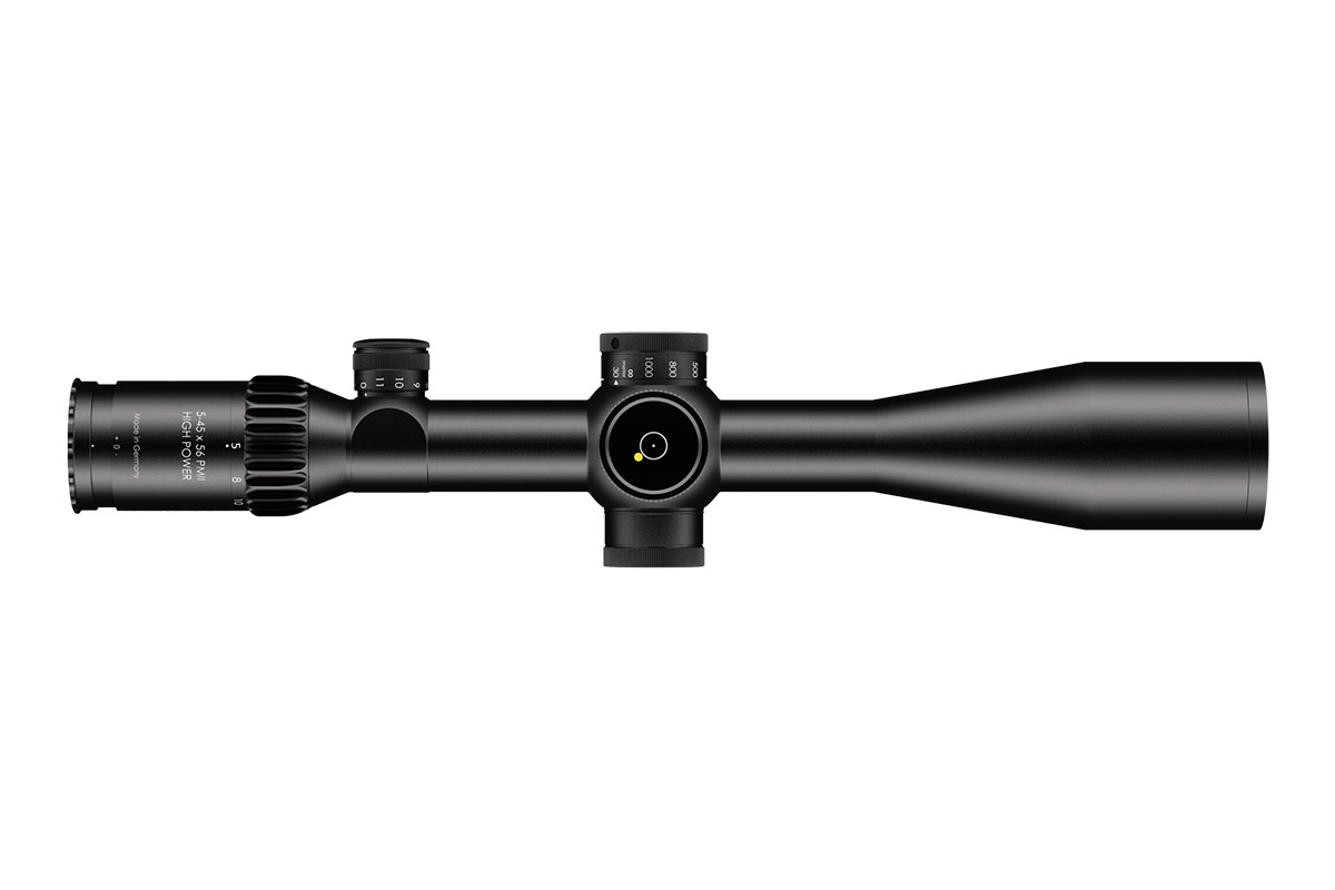 4060537061291 The 5–45×56 PM II High Power is a professional‑grade precision optic that merges a high‑performance riflescope with spotting‑scope capability. Designed for observation and ultra‑long‑range engagement, its enormous 9× zoom range (5–45×) makes it equally at home on reconnaissance, match, or tactical platforms where both identification and shot‑making accuracy are required. Engineered for extreme clarity and reach, the 56 mm objective delivers excellent light gathering while the optical system maintains a large usable field of view across the entire zoom range — allowing fast situational awareness at low magnification and razor‑sharp detail at high power. The reticle sits in the first focal plane, so hold‑offs and subtensions remain precise at any magnification. The model features robust, lockable turrets with fine 0.1 mrad click values and very large usable internal adjustment ranges tailored for extreme‑range correction. Built on a rugged 34 mm main tube, the High Power is constructed for demanding environments: it is fully weatherproof, fogproof and shock‑resistant. Despite its long reach, the design balances mechanical strength with practical ergonomics for field use. Standout Features Exceptional 5–45× magnification range for combined observation and precision shooting Large 56 mm objective for outstanding light transmission and image resolution First focal plane reticle for accurate ranging and holdover at any magnification Precision turrets with 0.1 mrad click value and extensive elevation/windage adjustment range Side/parallax adjustment for crisp focus from mid‑range to extreme distances High optical transmission (~90%) and illuminated reticle options for low‑light operations Robust 34 mm tube, weatherproof and built for professional use Key Specifications Magnification: 5–45× Objective diameter: 56 mm Main tube diameter: 34 mm Field of view: approx. 7.8–0.9 m @ 100 m Exit pupil: approx. 8.8–1.2 mm Eye relief: 90 mm Length: approx. 434 mm Weight: approx. 1,130 g Reticle: FFP (various tactical reticle options) Click value: 0.1 mrad Elevation adjustment range: ~27 mrad (internal ~29.6 mrad) Windage adjustment range: ±6 mrad (internal ~21.1 mrad) Parallax: adjustable Illumination levels: multiple (illuminated reticle available) Optical transmission: ~90% Designed and manufactured to professional standards, the 5–45×56 PM II High Power is the go‑to optic for operators and precision shooters who require unmatched versatility, extreme reach and uncompromising optical and mechanical performance.Se recibirá del proveedor después de realizar el pedido. Plazo de entrega de aproximadamente 13-15 días