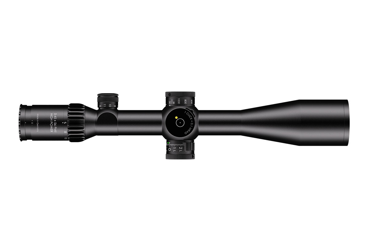 4060537036732 The 5–45×56 PM II High Power is a professional‑grade precision optic that merges a high‑performance riflescope with spotting‑scope capability. Designed for observation and ultra‑long‑range engagement, its enormous 9× zoom range (5–45×) makes it equally at home on reconnaissance, match, or tactical platforms where both identification and shot‑making accuracy are required. Engineered for extreme clarity and reach, the 56 mm objective delivers excellent light gathering while the optical system maintains a large usable field of view across the entire zoom range — allowing fast situational awareness at low magnification and razor‑sharp detail at high power. The reticle sits in the first focal plane, so hold‑offs and subtensions remain precise at any magnification. The model features robust, lockable turrets with fine 0.1 mrad click values and very large usable internal adjustment ranges tailored for extreme‑range correction. Built on a rugged 34 mm main tube, the High Power is constructed for demanding environments: it is fully weatherproof, fogproof and shock‑resistant. Despite its long reach, the design balances mechanical strength with practical ergonomics for field use. Standout Features Exceptional 5–45× magnification range for combined observation and precision shooting Large 56 mm objective for outstanding light transmission and image resolution First focal plane reticle for accurate ranging and holdover at any magnification Precision turrets with 0.1 mrad click value and extensive elevation/windage adjustment range Side/parallax adjustment for crisp focus from mid‑range to extreme distances High optical transmission (~90%) and illuminated reticle options for low‑light operations Robust 34 mm tube, weatherproof and built for professional use Key Specifications Magnification: 5–45× Objective diameter: 56 mm Main tube diameter: 34 mm Field of view: approx. 7.8–0.9 m @ 100 m Exit pupil: approx. 8.8–1.2 mm Eye relief: 90 mm Length: approx. 434 mm Weight: approx. 1,130 g Reticle: FFP (various tactical reticle options) Click value: 0.1 mrad Elevation adjustment range: ~27 mrad (internal ~29.6 mrad) Windage adjustment range: ±6 mrad (internal ~21.1 mrad) Parallax: adjustable Illumination levels: multiple (illuminated reticle available) Optical transmission: ~90% Designed and manufactured to professional standards, the 5–45×56 PM II High Power is the go‑to optic for operators and precision shooters who require unmatched versatility, extreme reach and uncompromising optical and mechanical performance.Se recibirá del proveedor después de realizar el pedido. Plazo de entrega de aproximadamente 14-16 días