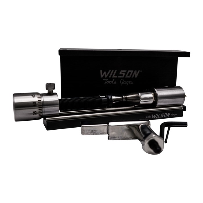 El kit L.E. Wilson .50 BMG Microstop incluye una recortadora, un soporte para casquillos de .50, un soporte de recortadora, una abrazadera para el soporte de casquillos y un tope micrométrico, todas las herramientas necesarias para asegurar una calidad óptima en el brass recargado.