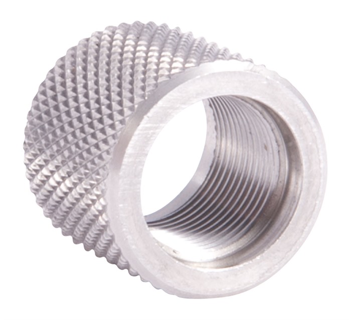 - Atornilla suavemente el protector de rosca en el cañón hasta que esté ajustado. No lo aprietes en exceso.