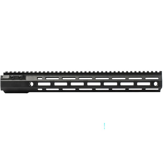 Fabricado en aluminio 6061-T6, este handguard está diseñado con un enfoque en la rigidez para reducir drásticamente la deflexión bajo carga. Se acopla al receptor superior mediante un tuerca de cañón de acero, que también ayuda a disminuir significativamente el desplazamiento del punto de impacto al utilizar un dispositivo de puntería láser infrarrojo bajo carga.