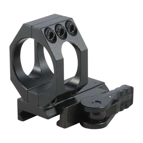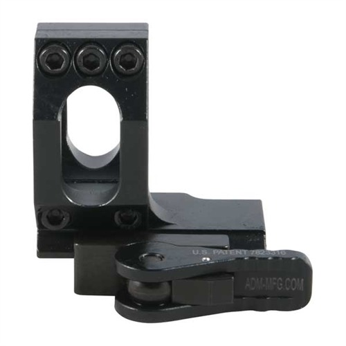 Quick-release lever-lock system clamps solidly to flattop rail and will not work loose even under heavy recoil—the more force acting on the lever, the tighter it locks. Depress the release tab to swing the lever open, and the mount easily lifts off the rifle. Adjustable with a flat head screwdriver or even a coin for an ultra-secure, no-slip fit on almost any Picatinny or Weaver-style rail, including over- or under-sized commercial rails. Lever may be configured to lock to the front or the rear to suit the operator’s preference. Large locking bar on the side of the mount engages the maximum amount of rail area, while the crossbolt and two integral locking lugs ensure rock-solid engagement of rail slots to prevent movement under recoil. Five heavy duty steel hex head screws (three on top, two on bottom) clamp the vertically split ring halves together. Cutouts in the ring sides and in the base reduce weight without sacrificing strength. AD-68 Aimpoint Mount is designed for Aimpoint optics or similar aiming devices requiring a single, 30mm ring, including the Comp C3 and M2/ML2/M3/ML3 series. Available in four configurations to suit a variety of mounting needs. Low positions the scope as close as possible to the top of the receiver.
