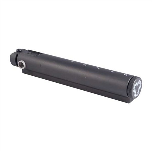 - Acepta culatas colapsables de Colt y otras de especificaciones militares que se ajusten a un tubo de amortiguador de 1.14 pulgadas de diámetro.