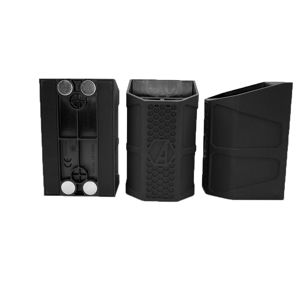 El S-Rack, fabricado en Alemania, se produce mediante un proceso de moldeo por inyección a partir de un polímero reforzado con fibra de vidrio altamente estable, como el que se utiliza comúnmente en la producción de armas modernas y cargadores, y ya es conocido por el AlphaGrip.