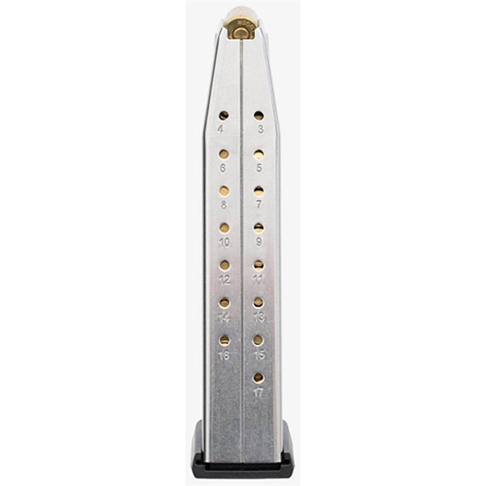 Además, incluye extensiones de agarre para longitudes de agarre X/XL y estándar, así como una base de suelo estándar para el Macro®, lo que permite que esta revista de 17 cartuchos se use cómodamente en cualquier variante de la pistola P365.