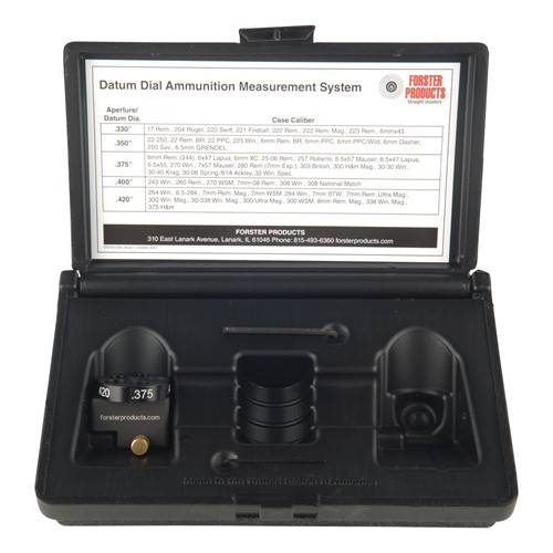 El DATUM DIAL AMMO MEASUREMENT SYSTEM de FORSTER PRODUCTS, INC. es la herramienta perfecta para refinar tus operaciones de dimensionado de cartuchos. Este sistema incluye un Datum Dial para verificar los casquillos de cartuchos, un gráfico que muestra los diámetros de datum comunes, instrucciones y una caja de almacenamiento. (Se requiere un calibrador).