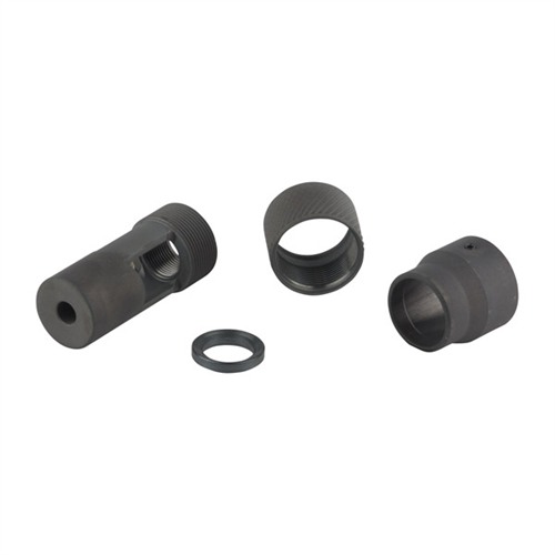 - Reúne todos los componentes del kit de freno de boca: freno de boca, funda de cañón con tornillo de ajuste, arandela de compresión y protector de rosca.