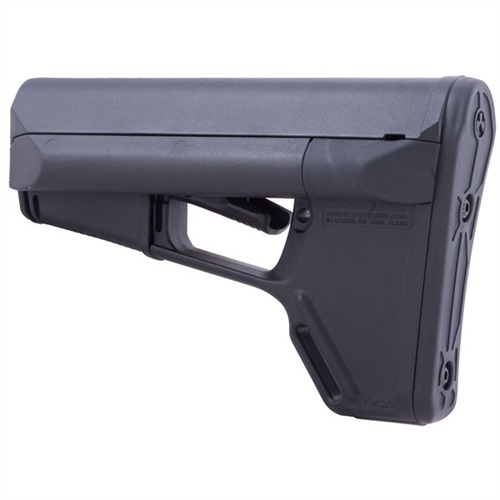 Adaptable Carbine/Storage (ACS) stock is a drop-in replacement for standard USGI M4 collapsible stock that gives the tactical operator extra storage options, a secure, comfortable cheekweld, and an advanced dual-locking lever. Smooth, streamlined exterior contours prevent snagging on clothing, sling, or vegetation, and help ensure fast exits from vehicles without snagging on gear. Removable battery storage compartments run the full length of the extra-wide comb and hold 2 AA or 3 CR-123 batteries, while providing a wide, contoured area for an exceptionally solid, comfortable cheekweld. Secure molded rubber caps keep water and dust out of compartments and face the rear of the stock for easy removal; cap exterior is beveled to resist snagging when shouldering weapon. Positive-locking trapdoor on right side of the stock reveals a roomy storage compartment for additional batteries, coiled up cleaning cable and other cleaning supplies, ear plugs, spare parts, or other small items. Magpul’s dual locking system uses an additional cam lever to protect the release lever from accidental operation, yet still allows you to adjust length of pull by simply pushing on the release lever. Slot molded in the toe provides an attachment point for a 1¼" wide sling. Also includes the same detachable rubber buttpad found on Magpul CTR and UBR buttstocks to help keep stock firmly mounted on shoulder. Mil-Spec fits 1.14" O.D. buffer tubes on Colt-manufactured M4 and similar mil-spec tubes that accept both four- and six-position collapsible stocks.