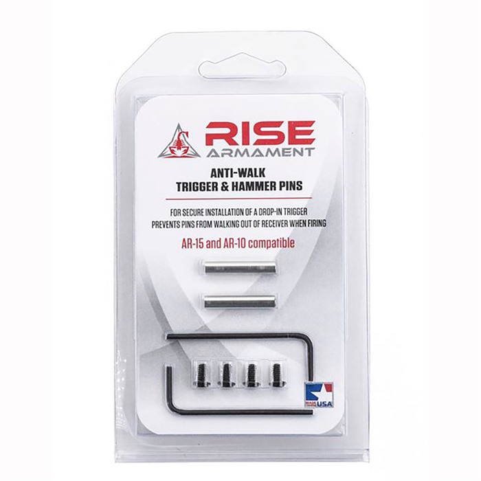 Los pines anti-deslizamiento para el gatillo AR-15 de RISE ARMAMENT ofrecen un nivel adicional de seguridad al instalar tus gatillos. Con un diámetro de pin de .154”, se recomienda un torque de 8 pulgadas-libra, mientras que el máximo es de 11 pulgadas-libra.