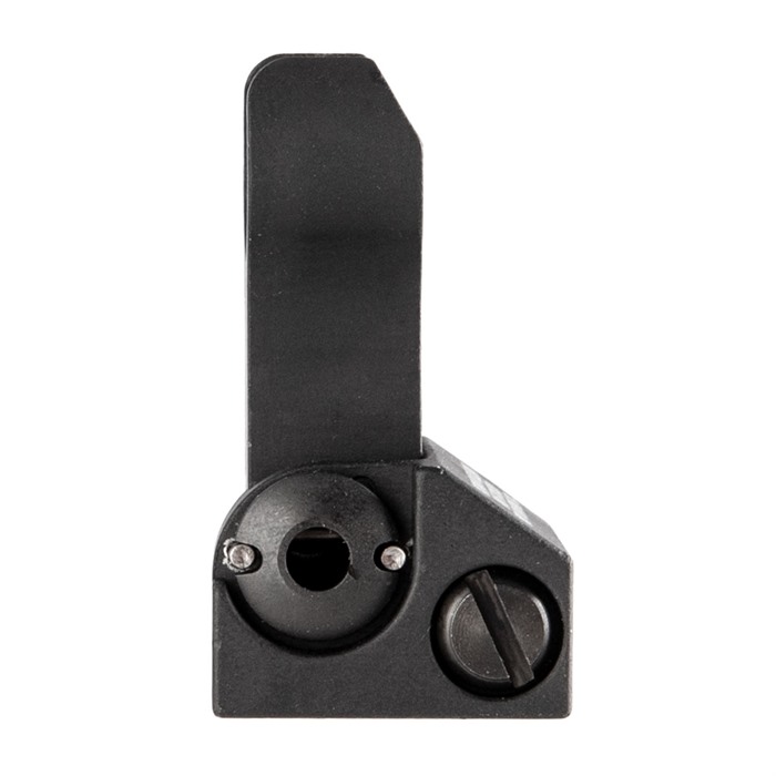 Rugged, flip-up sights provide failsafe backup when your primary optic or red dot sight fails. Sight body flips up easily when you need it and locks securely in place under powerful spring pressure and two locking detent balls, so it can’t be accidentally bumped down until you hit the spring-loaded button on the left side of the base to retract it. Positions apertures at the same height as factory sights, simplifying integration of these sights on your rifle. Base clamps securely to any military or commercial Picatinny rail using a standard flathead screwdriver. No protruding knobs or levers to catch on brush, clothing, or other equipment. Sturdy, protective “ears” shield posts and apertures from impact. HK-Style Front - distinctive “globe” shape that aids in fast target acquisition under stress. Also available with a self-illuminating Tritium dot on the post for precise shot placement in low-light conditions.