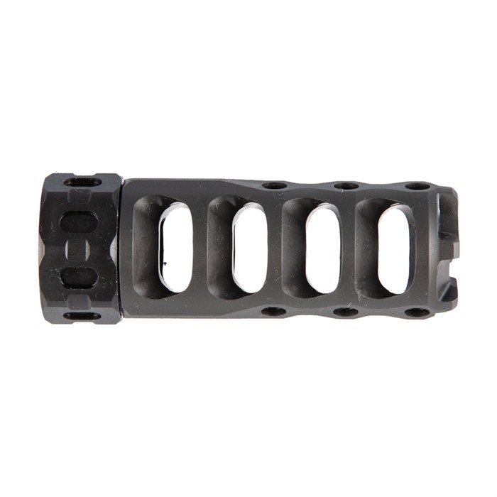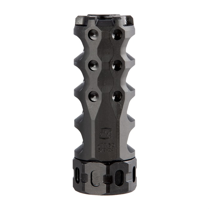 Developed from the ground up and backed by knowledge gained from years of pushing the edge of muzzle device performance, the Hypertap muzzle brake delivers more than Precision Armament have ever offered before. Their proprietary Hybrid Baffle Design combined with advanced Convergent-Divergent port geometry yields an unprecedented recoil reduction of over 70% on 308 Winchester and over 78% on 6.5 Creedmoor, while also maintaining modest 35-degree baffle angles and generous bore clearance. This results in exceptional safety, less gas blowback, better accuracy, and higher overall shooter comfort than any other device in its class. Fully tunable gas biasing allows the shooter to further reduce, or even eliminate, sight picture movement while firing. An integral universal timing nut eliminates the need for shims and allows quick field installation & removal using an adjustable wrench or the lightweight spanner tools (included). Additional features include: zero flash increase, compact lightweight design, a rugged skeletonized crown, cleaning friendly design, heat-treated stainless steel construction, a tough Ionbond® CrCN finish for superior durability and, as always, 100% Made in the USA.