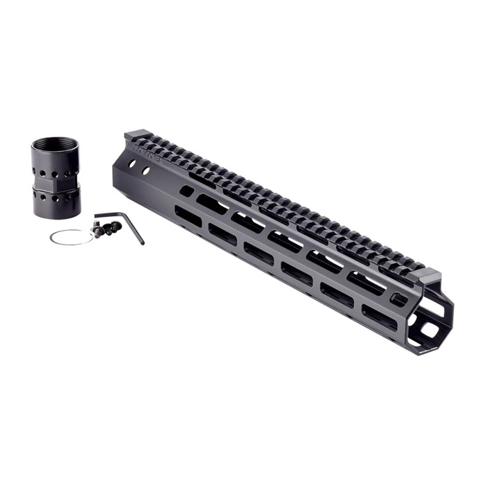 The best of both worlds-Wilson Combat’s lightweight but rock solid T.R.I.M rails for AR pattern rifles have been updated with the Magpul M-Lok accessory attachment system. Available in multiple lengths, these new AR handguard rails are among the ultimate in high quality, user-installed modularity. Their precision machined three, six, and nine O’Clock M-Lok positions enable fast, easy mounting of multiple shooting accessories popular across the shooting industry. In addition to a lighter, sleeker rail profile, the barrel nut design was retained from the original T.R.I.M rail to make it simple for users to easily swap the older T.R.I.M rail design with the M-Lok version. The T.R.I.M. (Tactical Rail Interface, Modular) AR rail has been designed by the Wilson Combat engineering team to be among the lightest, strongest and most versatile compact free-floating rail systems on the market. Machined from high-strength 6005A-T5 aircraft aluminum with a Mil-Spec hard anodized finish, the T.R.I.M. rail handguard / interface and its robust, anti-rotational mounting system won't sacrifice strength, stability or accuracy over bulkier designs. The oversize and tough nitrocarburized 4130 steel barrel attachment nut reduces heat transfer and the ergonomic handguard design offers a sleek, non-abrasive platform for comfortable dynamic shooting. Available in 9.3” or 13.8”. Light, Strong and Compact Free-Floating Rail Design Machined from 6005A-T5 Aluminum Extrusion Mil-Spec Hard Anodized Black Finish Simple, 5-Minute Installation with Common Hand Tools Easily Removed or Replaced in the Field 1.47" Internal Diameter is Compatible with most Low-Profile Gas Blocks Overall weight with attachments: 9.4 oz./11.6oz Note: The hardened screws used in this handguard are tapered at the base to provide a flush, smooth fit. It is important that during initial installation that a small amount of grease is placed on the tapered shoulder of the screw to prevent screw galling against the softer rail. If a screw seizes and becomes immobile do not attempt removal, please contact Wilson Combat customer service.