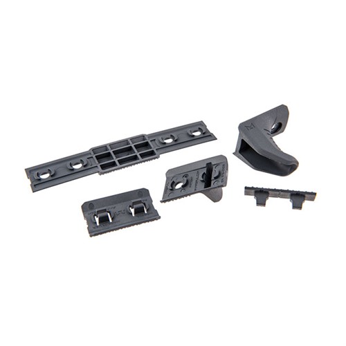 Este kit permite que cada usuario configure su equipo a su gusto. También incluye un M-LOK Hand Stop MOE Adapter para su uso con las guardas o forends de polímero M-LOK de Magpul, así como con otras rieles de perfil más ancho.