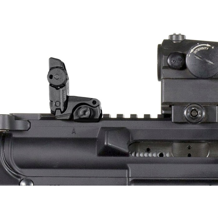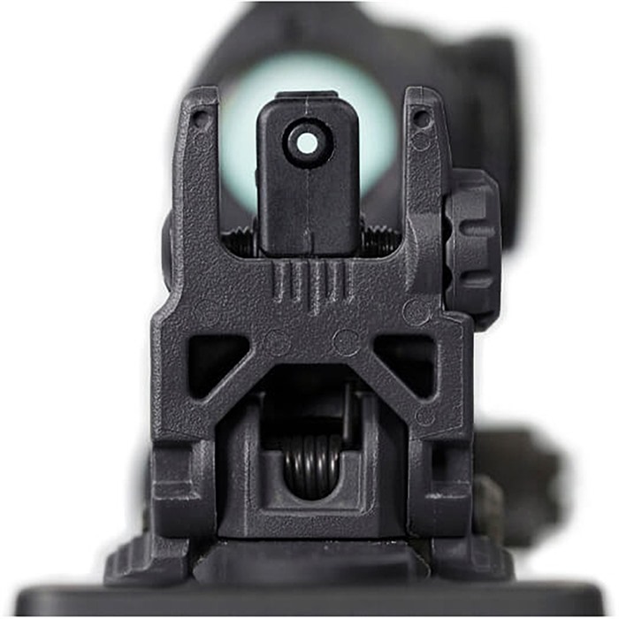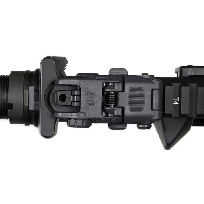 - Despliega la Mira: Para desplegar, presiona el mecanismo de liberación ambidiestro ubicado en cualquiera de los lados de la mira.