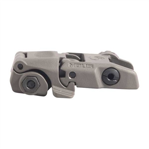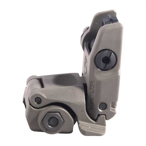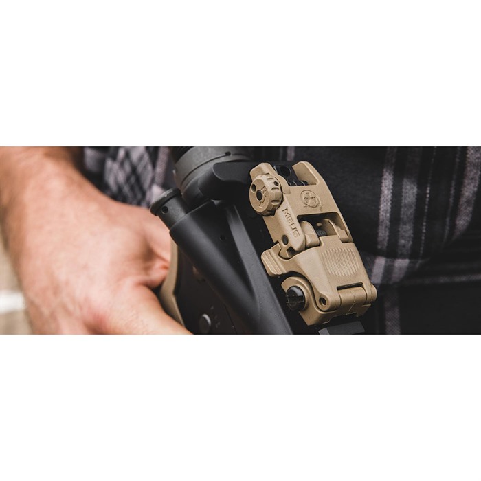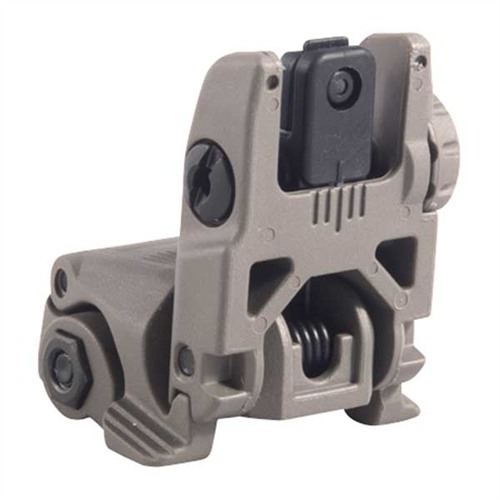 Low-profile, flattop-mounted, polymer sights deploy instantly at the touch of a finger to provide backup sighting if a primary optic fails. Streamlined contours mean there’s nothing to snag on brush, sling, or other gear when folded. Spring-loaded ambidextrous release mechanism lets you hit the grooved tab on either side of the sight to deploy, and lock it in place. Hitting the same tabs retract the sight when you’re done. Uses less than 1" of MIL-STD 1913 Picatinny receiver rail space and locks securely in place with the included steel crossbolt. Provides the same height over bore as standard A2 iron sights. Windage-adjustable rear sight has two apertures: a large, .185" peep and a .070" peep. Designed for AR-type rifles and carbines, fits any weapon with Picatinny rails.