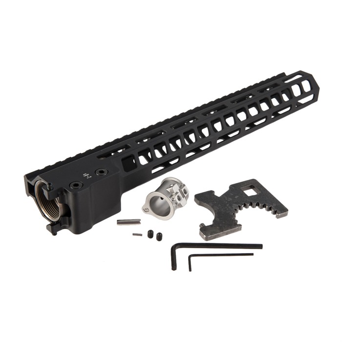 The Geissele MK14 Super Modular Rail tactical AR-15 handguard has a slim cross-section that makes it is ideal for shooters who use rail covers and/or a vertical grip - and who also employ the thumb-over-the-bore support hand grasp. Similar to their MK13 SMR, the Geissele MK14 delivers acres of real estate for mounting accessories, with M-LOK slots running the handguard’s full length at the 3, 6, and 9 o'clock positions. The MK14 Super Modular Rail also sports an uninterrupted Picatinny rail running the full length of the top. Geissele even thoughtfully includes sockets for QD pushbutton sling swivels at the 11 and 1 o’clock positions at the rear. Strong & lightweight machined 6061 T6 aluminum Barrel Nut Wrench no longer included with the handguards. Type III hardcoat anodized Available in basic Black or Geissele’s Desert Dirt Color (DDC) Proprietary free-float barrel nut included Geissele also engineered the MK14 Super Modular Rail handguard to free-float the barrel using their easy-to-install proprietary barrel nut. The nut is 2.25" long, so there’s plenty of surface area for secure, rigid, straight anchoring of the handguard in place. Please note that a gas block is no longer included with these handguards.