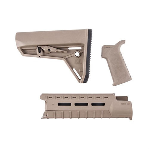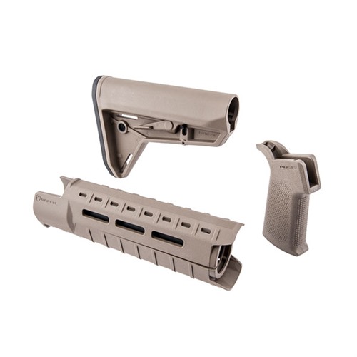 Upgrade your AR-15 rifle with this MOE-SL furniture set by Magpul. The MOE SL Stock – Mil-Spec Model is a drop-in replacement buttstock for AR-15/M4 carbines using mil-spec or commercial sized receiver extension tubes. Designed for the modern battlefield, the sleek profile, dual-side release latches, rolled toe, and angled rubber butt-pad is optimized for use with body armor or modular gear and provides for efficient shoulder transitions. The MOE SL Hand Guard for AR-15/M4 firearms with carbine-length gas system and A2 front sight provides modular flexibility with M-LOK accessory slots in a lightweight, sleek, cost effective design. Similar to the MOE-K2, the MOE SL Grip (Magpul Original Equipment Slim Line) is a drop-in upgrade for AR-15/M4 pistol grips with a more vertical grip angle optimized for short LOP weapons that bring the primary hand in closer to the shooter’s body. With an aggressive new texture for positive weapon control along with excellent ergonomics, the SL Grip provides a slightly smaller size and slimline feel. All mounting hardware included. Must be used with the triangular A2 front sight assembly; other gas blocks are not compatible.
