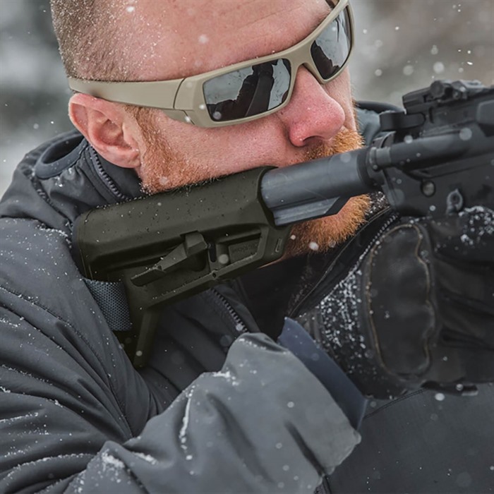 Further developing Magpul's original SL stock, the SL-K is designed for compact PDW-style weapons or users who simply desire a small, light, highly maneuverable stock. Drop-in replacement for M4-type adjustable stocks that fit mil-spec (1.14" O.D.) buffer tubes. It offers a short, slim profile, comfortably sloped cheekweld, a rubber recoil pad with a "rolled" toe for easy shouldering and better fit when wearing body armor. Built-in 1.25" sling loop, and also accepts Magpul ASAP® and M-LOK QD Sling Mount (available separately) for pushbutton QD sling swivels. Ambidextrous latch enables easy extension/retraction of stock, plus it minimizes rattle on the receiver extension without requiring additional locks, levers, or springs. Latch made of steel, too, so it won't fail under hard use.