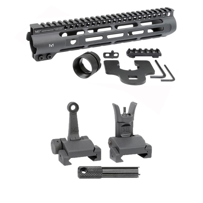 When adding a new handguard to their rifles, consumers usually take the next step of adding iron sights onto their increased rail space, thanks to the expanded sight radius offered by the new forearm. Now, Brownells packages these two upgrades into one, combining the Midwest Industries AR-15 Slim Line Handguard with Midwest's Flip-Up Combat Sights. The Midwest Industries Slim Line Handguard provides AR owners with three rows of M-LOK attachment points, as well as a continuous flattop Picatinny rail running along the top of the forearm. The handguard can be had in 9.25-, 10.5-, 12.625-, 14-, and 15-inch lengths that correspond with many of today's popular barrel lengths for AR-style rifles and pistols. Each handguard is attached to the upper receiver through the company's 4140 heat-treated barrel nut. Combined with these handguards is the Midwest Industries AR-15 Flip-Up Combat Sights. These sights can be had in either 1.5-MOA or 2-MOA adjustments at the front post, while the rear aperture offers 0.5-MOA adjustments. When not in use, the sights fold flat on the rail and when up, they provide shooters with a common, recognizable and easily used A2-style sight picture.