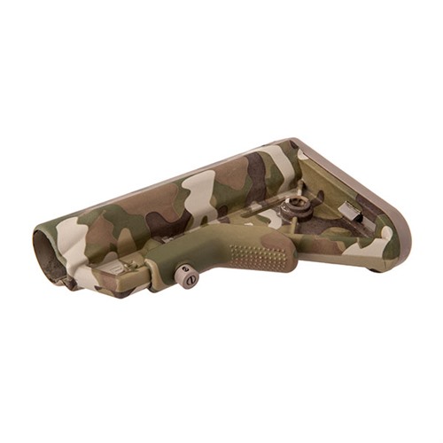 La Bravo omite la capacidad de almacenamiento del SOPMOD para proporcionar un perfil más delgado y angula la parte trasera de la culata, asegurando una colocación rápida y consistente contra el hombro y la mejilla. Fabricada con materiales y acabados MIL-SPEC, esta culata de polímero reforzado es utilizada actualmente por el ejército de EE. UU. y se adapta a extensiones de receptor tipo M4, ofreciendo un mejor apoyo para la mejilla diseñado para mayor comodidad y consistencia.