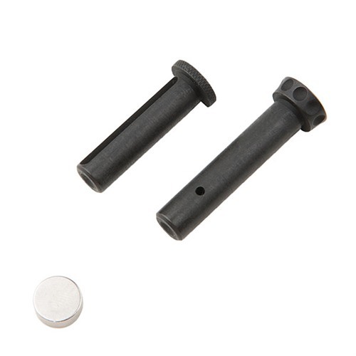 Estos pasadores de acero endurecido se adaptan a los lowers estándar de AR-15, facilitando la tarea de desmontar el rifle de manera fácil y rápida. Los pasadores son .030" más largos que los estándar, lo que proporciona un mejor agarre al empujarlos desde el lado izquierdo del receptor.