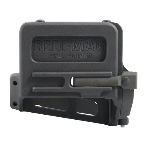 Don’t lose precious seconds in competition or combat fumbling for a spare magazine during a reload. This rugged speed loading system clamps directly to the lower receiver of any AR-15/M16 rifle or carbine and securely holds a second, fully loaded magazine alongside the mag well for super-fast mag changes. More reliable and easier to use than improvised methods, like taping two magazines together, that can cause malfunctions at critical moments. Closed-top design protects the spare mag from rain, dirt, dust, and debris and prevents the top round from jumping forward under recoil. Independent release system lets you drop the spare mag and the mag in the weapon separately to allow tactical reloads and greater flexibility in clearing malfunctions. Bolt Catch Extension (BCE) mounts directly to the factory bolt catch and lets you release the bolt, with or without the Redi-Mag attached to the gun, simply by slapping the BCE with an open palm. Installation requires no permanent alterations to receiver or mag well. Designed for mil-spec receivers; may not fit custom billet receivers. Machined Aluminum model offers lighter weight and a hinged mounting bracket for easier attachment to your rifle; does not have BCE.
