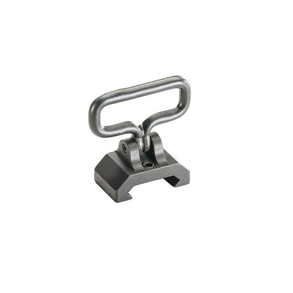 874748002189 Montaje sólido de una sola pieza de aluminio con un pasador de pivote y un swivel de acero que se conecta a cualquier riel de accesorios estilo Picatinny o Weaver para una conexión instantánea de la correa. El tornillo de ajuste con punta de nylon bloquea el montaje al riel. El swivel recubierto de goma evita el golpe metal-con-metal y elimina el desgaste de la correa en el punto de contacto. Acepta correas de hasta 1¼" de ancho.Eliminado del programa por el fabricante