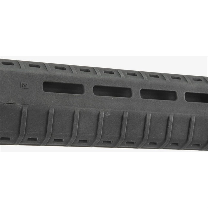 The MOE SL Hand Guard for AR-15/M4 firearms with mid-length gas system and A2 font sight* provides modular flexibility with M-LOK™ accessory slots in a lightweight, sleek, cost effective design. Designed with versatility in mind, M-LOK slots at the two, six, and ten o’clock positions allow the attachment of optional Picatinny rail sections and other accessories for mounting tactical lights, slings, grips, etc. Reinforced, heat-resistant polymer construction provides durability without the weight and expense of an aluminum rail hand guard. A large front extension and lower lip protects the user from the hot front sight gas block assembly and maximizes useable hand guard length. FEATURES Narrow design replaces factory 2-piece, mid-length plastic hand guards Easy to install utilizing existing delta ring and ROUND front hand guard retaining cap with A2 front sight assembly* Slots at the two, six, and ten o'clock positions for mounting direct-attach M-LOK accessories or M-LOK 1913 Picatinny rail sections Reinforced, heat-resistant polymer construction Integral riveted aluminum heat shield Front lip and long side extensions shields hand from hot sight assembly