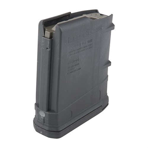 MAGPUL PMAG® LR/SR GEN M3™ 308 WINCHESTER RIFLE MAGAZINES FOR AR-308 The 7.62x51 NATO (.308 Winchester) PMAG 10 LR/SR GEN M3 is a lightweight, cost effective, highly reliable magazine for SR25/M110 pattern rifles in the smallest possible magazine size. It features true 10-round capacity and includes a constant-curve body, a high-quality stainless steel spring, and self-lubricating anti-tilt follower. The easy-to-disassemble flared floorplate aids extraction and handling of the magazine while providing improved drop protection. Its simple, tool-less disassembly makes for for easy cleaning and maintenance. FEATURES Anti-tilt, self-lubricating follower, a high-quality stainless steel spring, and constant-curve internal geometry ensure smooth feeding Ribbed gripping surface and new aggressive front and rear texture for positive magazine handling Next-generation impact and crush resistant polymer construction Flared floorplate aids magazine handling and disassembly Made in the USA. SPECS Caliber: 7.62x51mm / .308 Winchester Platform: AR10, M110, SR25 Compatibility: Armalite AR-10A, Colt LE901-16S, CORE Rifle Systems CORE30, JP Enterprises LRP-07, KAC SR25, LaRue OBR, Les Baer .308, LMT .308 MWS, LWRCI REPR, Mega Arms MATEN, Noveske Gen III N6, POF P-308, Ruger SR-762, Ruger Precision Rifle, S&W M&P10, SIG716, others Optimized for use with 7.62x51 M118LR or other .308 Winchester match ammunition with a max OAL of 2.830 *NOTE: Compatible with older model Bushmaster .308 ORC, Remington R-25, and DPMS LR308 rifles, but not optimized for bolt lock functionality with newer models based on the DPMS GII design. NOT compatible with Armalite AR-10B, Springfield Armory M1A, Rock River Arms LAR8, FN SCAR 17S, PTR-91, HK417 or any other rifles that utilize M14, FN FAL, or HK 91/G3 patterned magazines. DOES NOT INCLUDE DUST COVER Also, to accommodate longer than SAAMI-spec match ammunition, this magazine may not drop free from all makes of lower receivers.