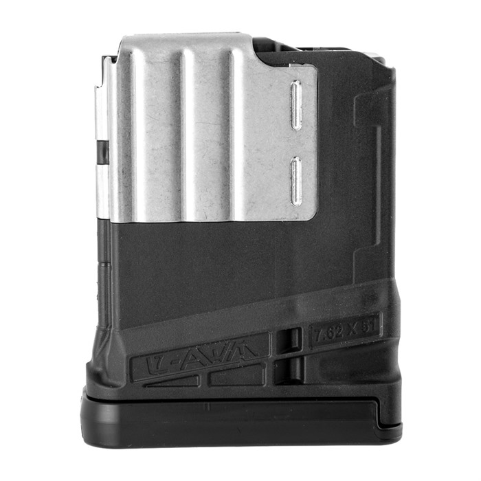 When they set out to develop a tough and reliable .308 polymer magazine on the market, Lancer took engineering inspiration from the L5AWM (5.56) and the SIG Sauer MPX, combining the best advances of both to bring the L7AWM 7.62X51mm magazine to life. The L7AWM is lightweight with steel feed lips that wrap completely around the magazine to maximize stiffness and reliability while preventing dimpling to the front of the magazine. A switchable drain lock in the floor plate comes standard on all L7s, allowing users to configure the magazine for either water-borne or extreme dust conditions. The L7AWM is designed to work in multiple weapon systems. Fits DPMS platform 308 as well as SR25, LM308, SIG716, Larue OBR and Robinson XCR. Does not fit Armalite AR10, Scar17 or HK417.