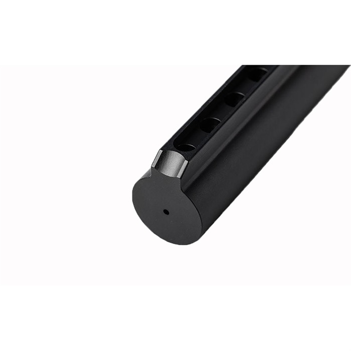 - Orificios de drenaje de guía de posición: Diseñados para eliminar rápidamente el agua del sistema operativo de tu arma si estás cazando o disparando en entornos inundados. En condiciones de disparo seco, los orificios también permiten que el aire escape durante el ciclo de compresión del buffer, mejorando la fiabilidad.